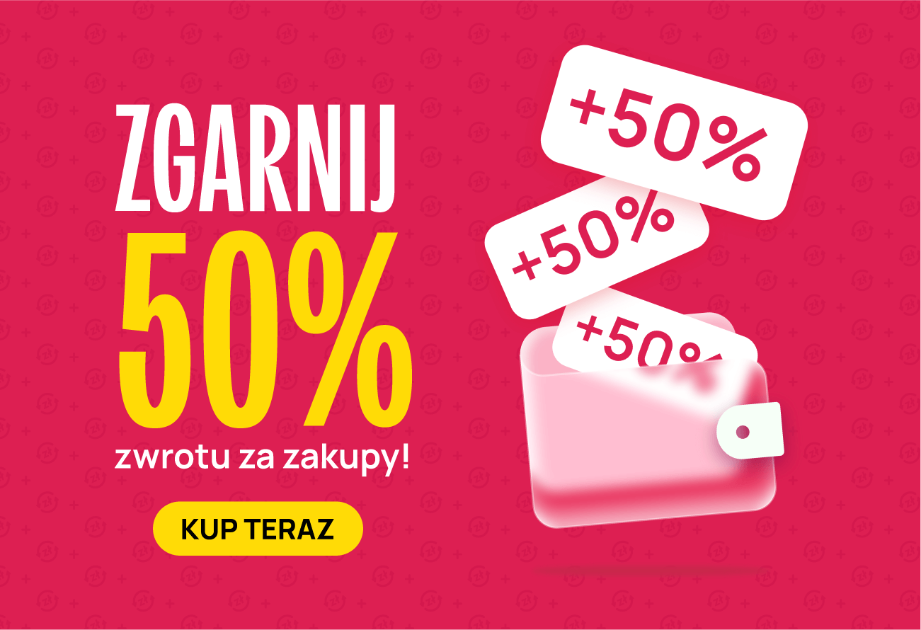 Zrób zakupy o dowolnej wartości, odbierz aż 50% zwrotu wartości każdego zakupu w punktach lojalnościowych i kupuj prezenty Świąteczne taniej! *Promocja dotyczy członków Klubu Lojalnościowego i obowiązuje w dniach 28.10-09.11.2025 r. Promocja obowiązuje na wszystkie zakupy, bez wartości minimalnej koszyka. Szczegóły akcji znajdziesz na www.superprezenty.pl